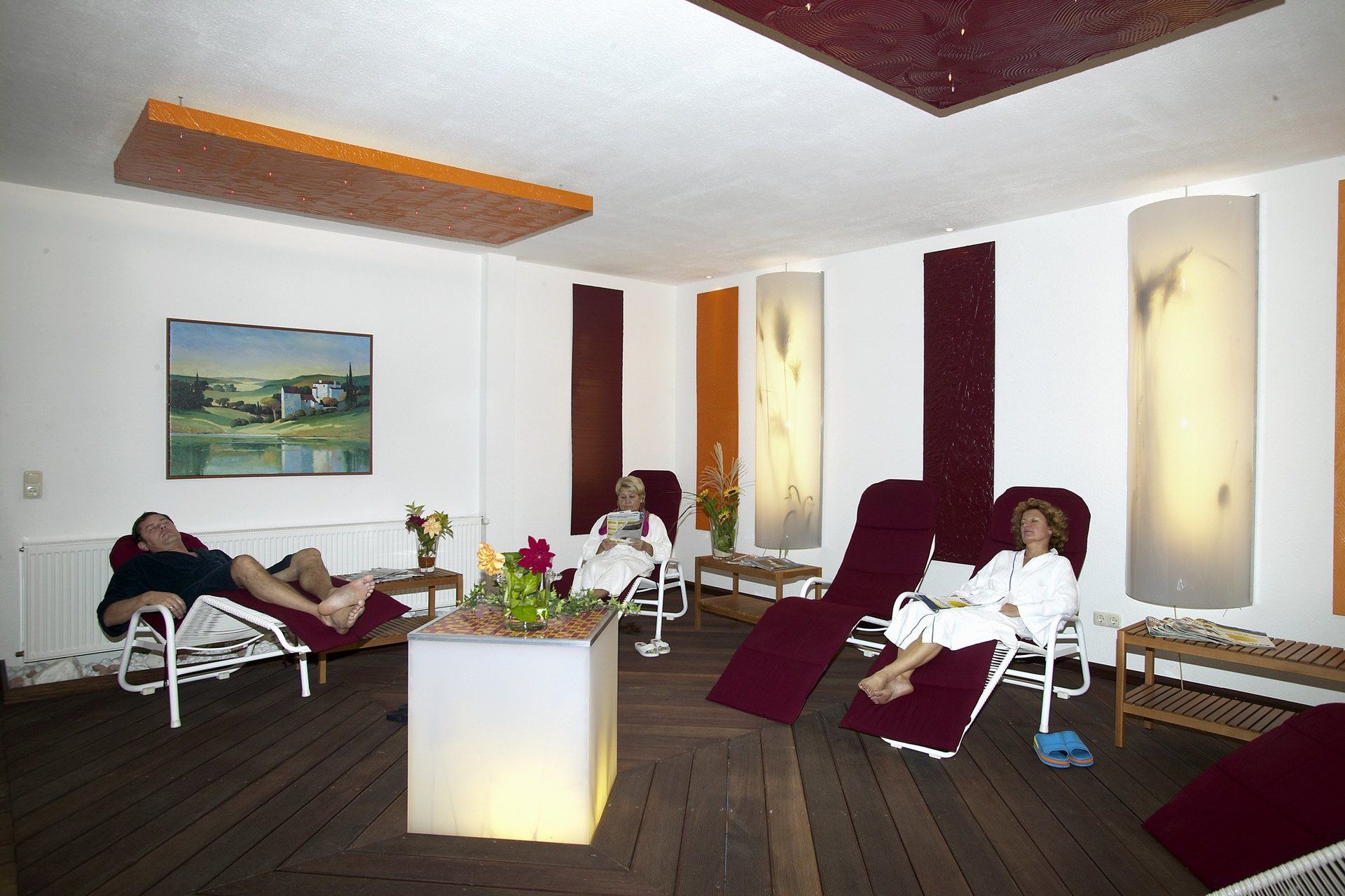 2 Themen-Ruheräume ergänzen den Wellnessbereich. Hier können Sie zwischen den Saunagängen ruhen und entspannen.
